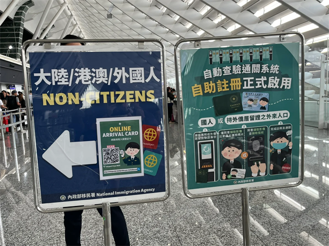 桃園機場入境: 下機后跟著指示牌前往入境檢查,需掃碼填寫入境信息: